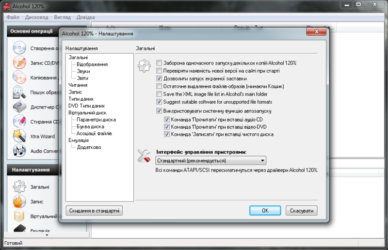 Alcohol 120% - популярна програма для створення точних образів CD / DVD дисків і віртуальних дисководів. Alcohol 120% належить до класу емуляторів і працює з багатьма форматами образів, знятих з CD / DVD інших програм. Підтримуються файли-образи CloneCD, CloneDVD і Nero Burning ROM. Велика кількість настройок дозволяє змонтувати образ навіть з захищених дисків. Серед налаштувань емулятора можна виділити наступні опції: пропуск помилок читання, покращене сканування секторів, читання субканальних даних з диска, вимірювання позиціонування даних із заданою точністю, емуляція поганих секторів і емуляція RMPS. У налаштуваннях Alcohol 120% є також можливість встановлення регіонального коду віртуального приводу. Інтерфейс Alcohol 120% переведений на велику кількість мов, включаючи українську мову.